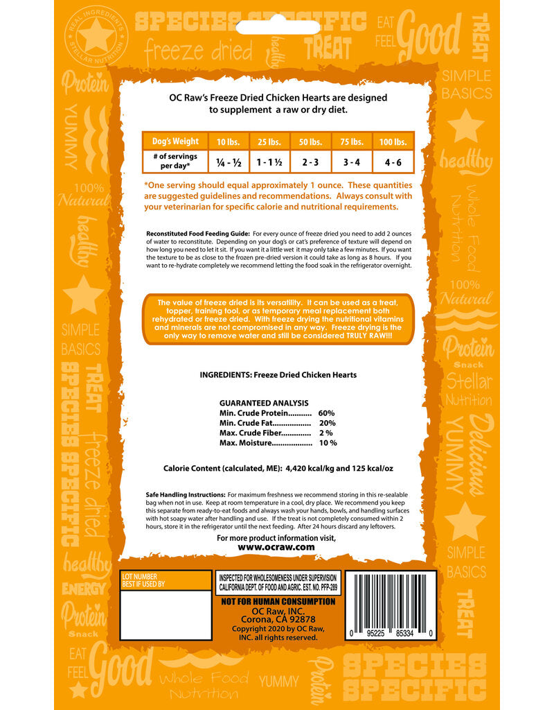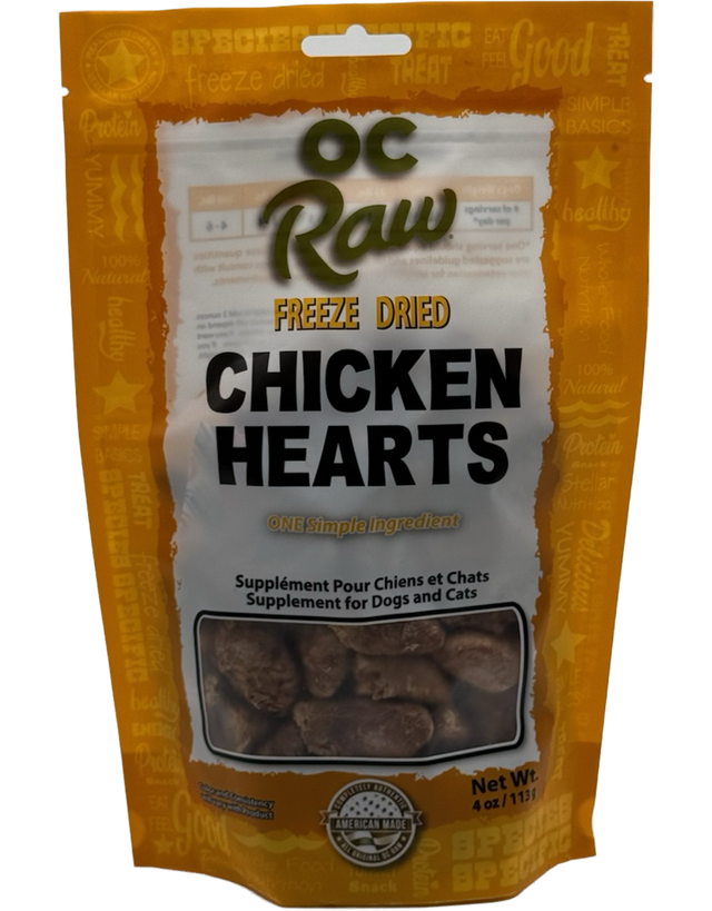 OC Raw Freeze Dried Chicken Hearts, 4oz - OC Raw Freeze Dried Chicken Hearts, 4oz is backordered and will ship as soon as it is back in stock.