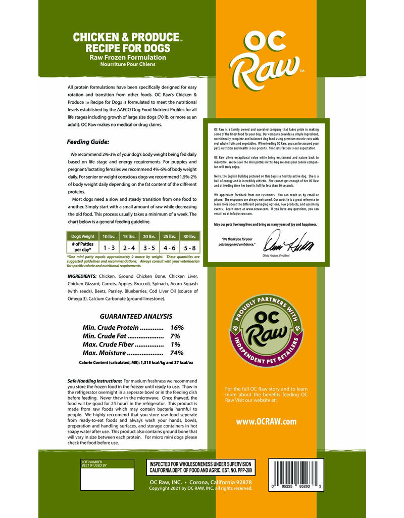 OC Raw Frozen Sliders Chicken & Produce, 4lbs