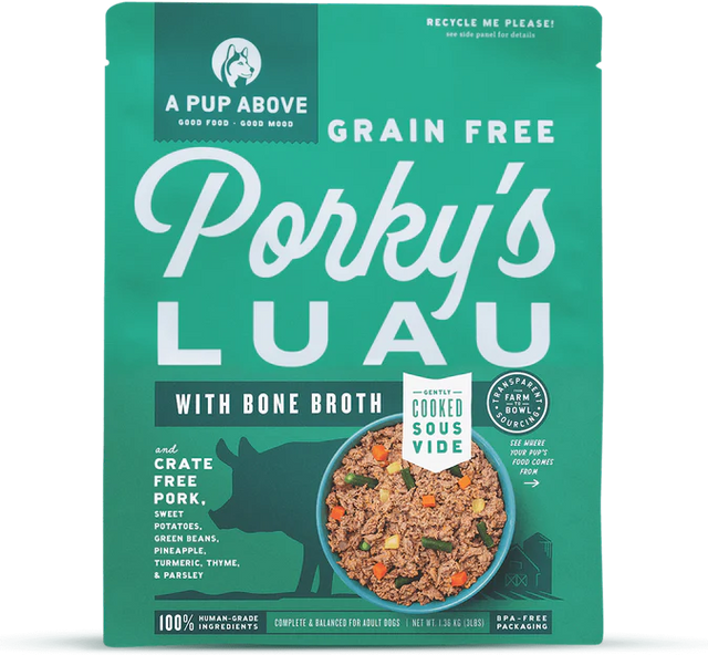 A Pup Above Frozen GF Porky's Luau delivers premium nutrition in convenient 1lb patties designed for dogs with dietary sensitivities. This grain-free formula combines pork with wholesome ingredients to support optimal digestion and sustained energy. Each patty is carefully portioned for easy feeding and storage, making mealtime simple while maintaining nutritional integrity. Crafted with the same quality standards as fresh-prepared meals, this frozen option provides the nutritional benefits of a raw diet without compromising convenience. Ideal for dogs requiring grain-free nutrition or those whose owners prefer the simplicity of pre-portioned meals.