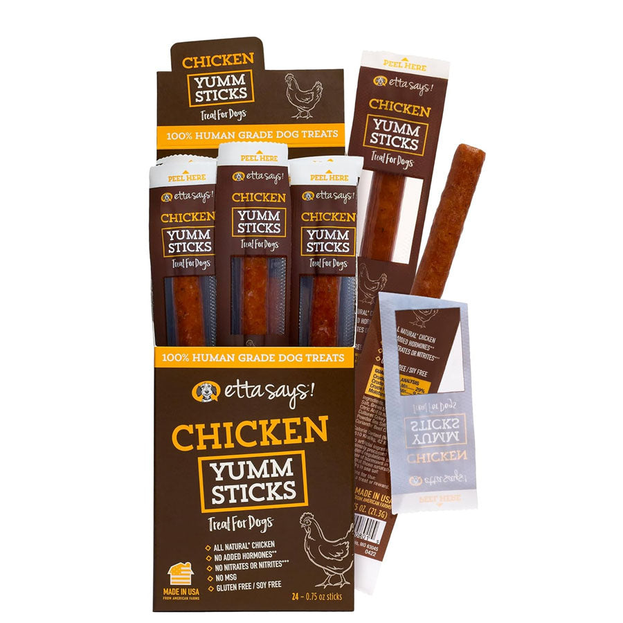 With Etta Says Chicken Yum Sticks, you can give your dog a treat that is both delectable and beneficial. Your dog will love the irresistible taste, and you'll love knowing you're providing a treat that supports their overall well-being. Treat your dog to the pure, savory goodness of Chicken Yum Sticks today!