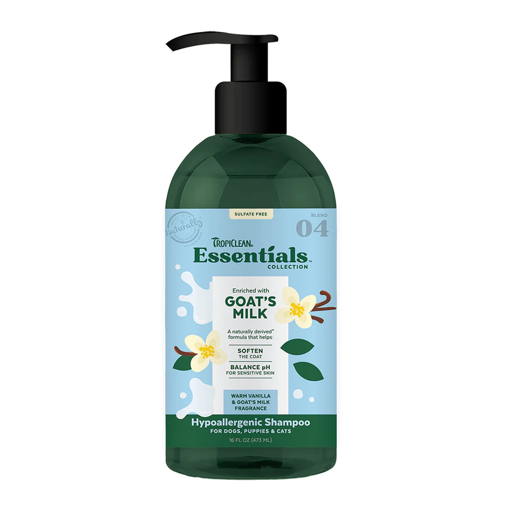 Tropiclean Essentials Collection Warm Vanilla & Goats Milk Hypoallergenic Shampoo, 16oz